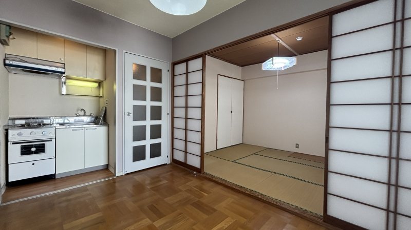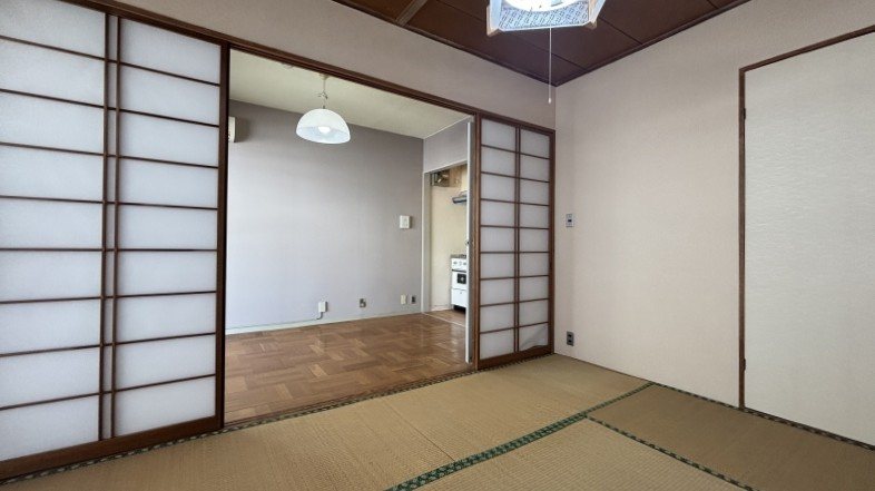室内は2K、障子を外せば約11帖のワンルームとしても利用できそうです。
