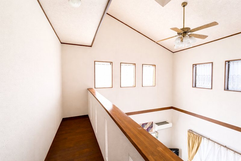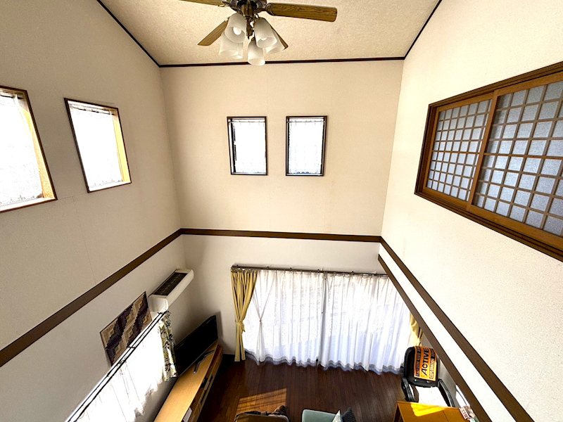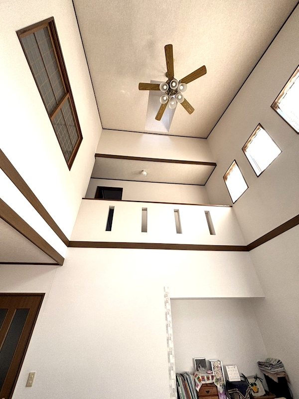 リビング吹き抜け:シーリングファン付きの淵抜けになります。