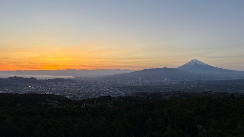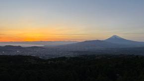 眺望:富士山と眼下に三島沼津の街並み、その先には駿河湾の美しい海岸線を臨む圧巻の眺望。