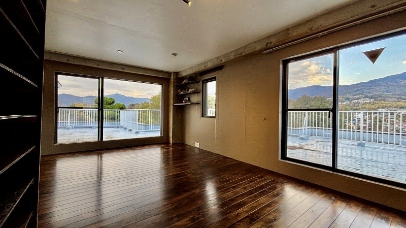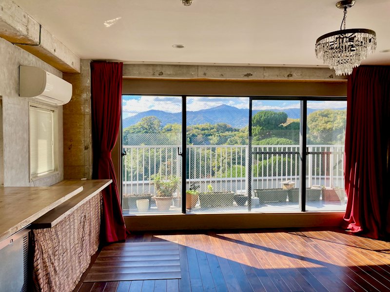 プレミアム住戸として分譲され、専有面積98.85㎡。屋上部分を贅沢に利用したルーフバルコニーは3方位に合計145.70㎡の広さを誇り、真鶴らしい海・街並み・山緑のそれぞれ異なる景色が楽しめる非日常空間です。