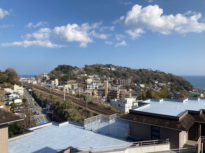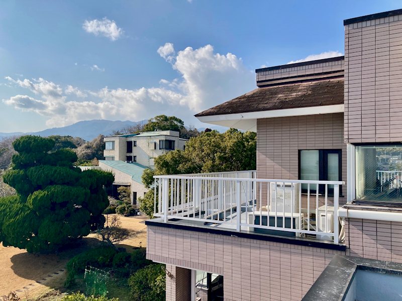 JR東海道線真鶴駅より吉浜海岸方面へ徒歩8分、箱根の山々から相模湾まで望む朝日フレール真鶴最上階ペントハウスのご紹介です。