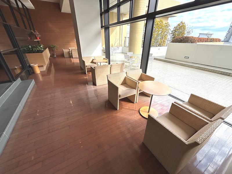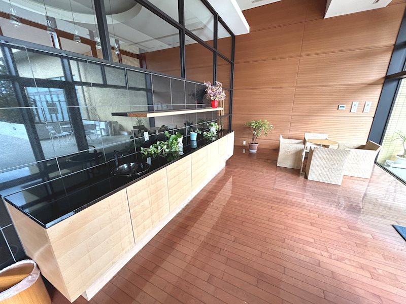オシャレなカフェのような場所。木目調がひと際目立ちます。