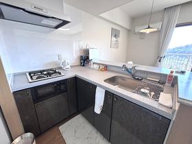 L型の対面キッチン。開放的な空間で料理が楽しめます。