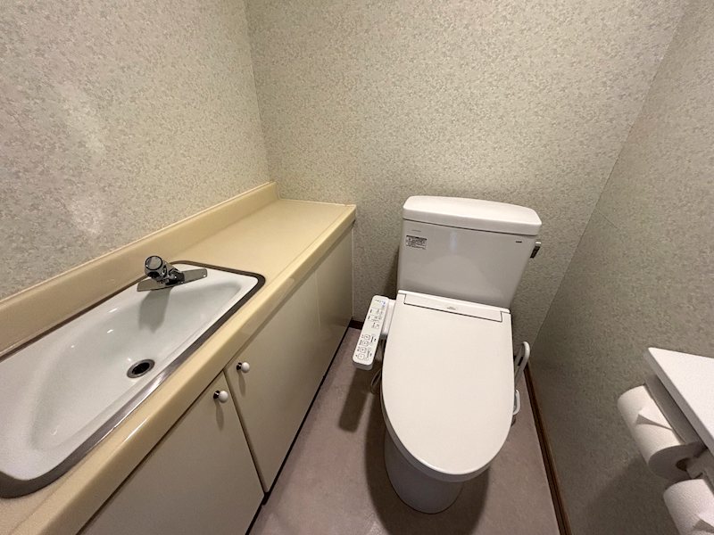 ゆったりとしたスペースのトイレ。手洗い場も確保されております。