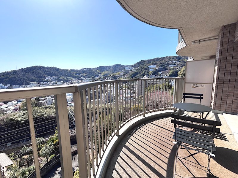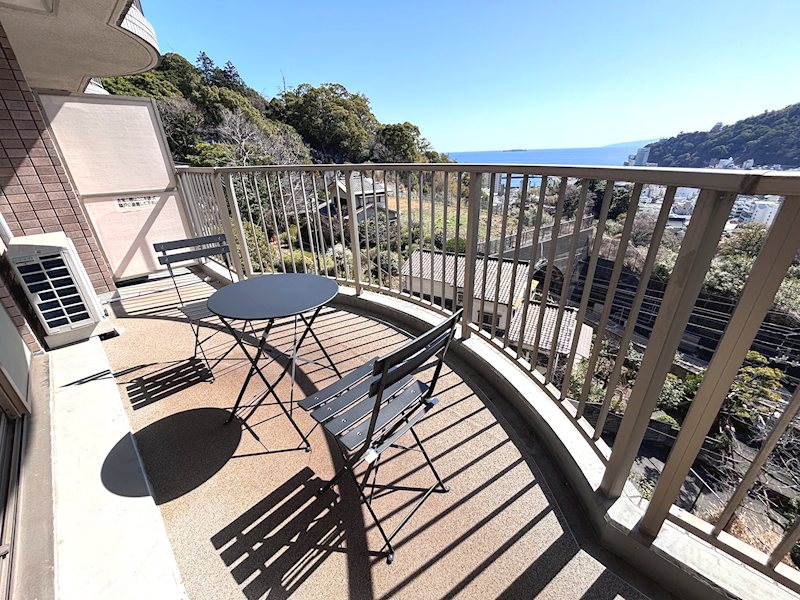 バルコニーから正面に紺碧の相模湾一望。