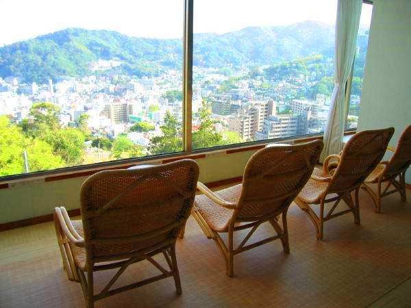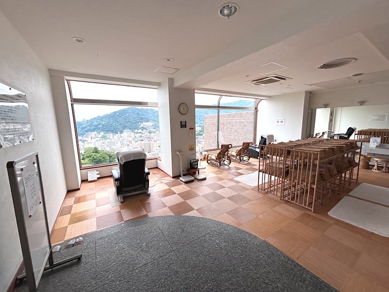 温泉上がりの休憩スペース。ここで景色を眺めながら極上時間がゆっくり流れます。