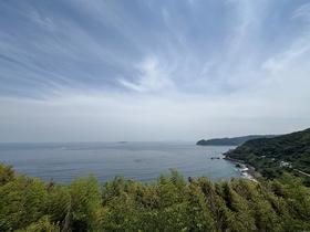 【眺望】初島を正面に、海を見下ろし、沿岸の波打ち際も見える眺望です。