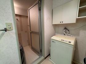【洗面スペース】洗面所に洗濯機置き場が併設されています。浴室は、使用感がありません。