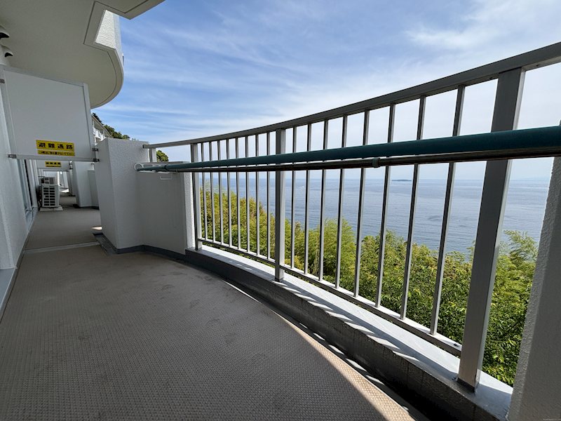 【眺望】初島を正面に、海を見下ろし、沿岸の波打ち際も見える眺望です。