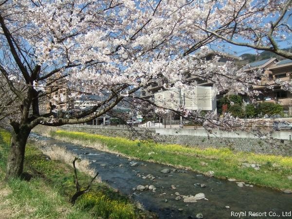 【千歳川】神奈川県と静岡県の県境を流れる千歳川。咲き誇る桜並木が、訪れる人の心を穏やかに包み込みます。