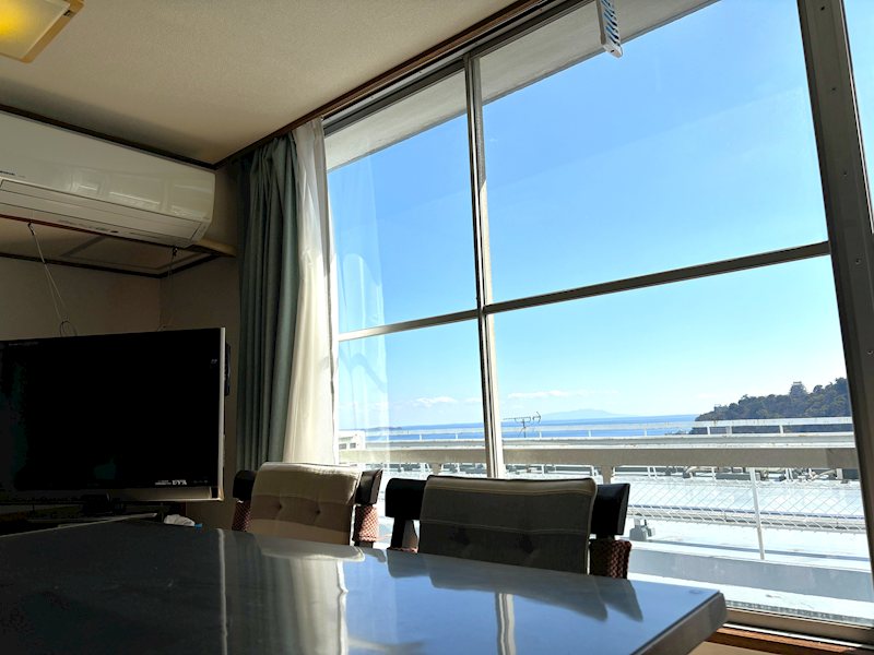【LDK】バルコニー側左手には、海・花火大会など熱海らしさのある眺望を望む。