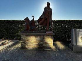 貫一お宮の像がレジデンス道路向いにあります。