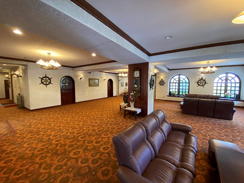 展望ラウンジ。熱海港・相模湾を望む。海上花火大会時には賑わいを見せる。