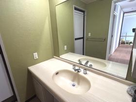 【洗面室】洗面室です。大鏡を設えた化粧台が設置されております。