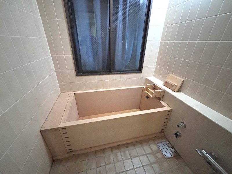 【浴室】檜の浴槽も交換済。温泉引込可能(海音クラブに加入が必要です)な浴室。