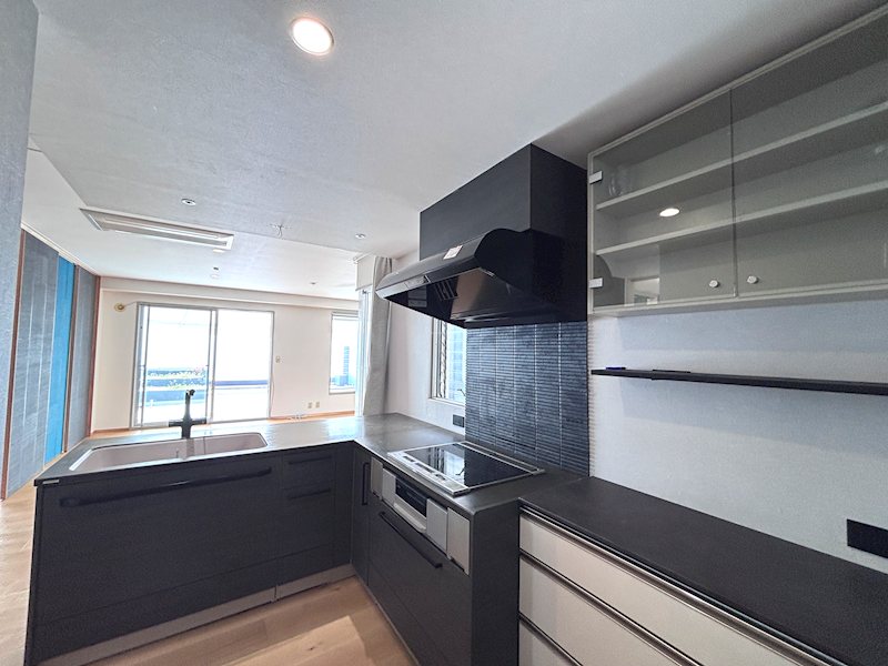 【キッチン】トクラスのマットブラックに交換済。オリジナルの間取から広げております。