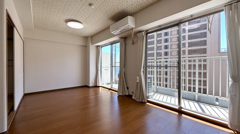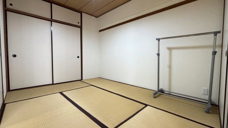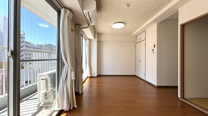 リビングダイニング:和室が併設しております。奥には物入が備わっており、設置されているエアコンは2022年式です。