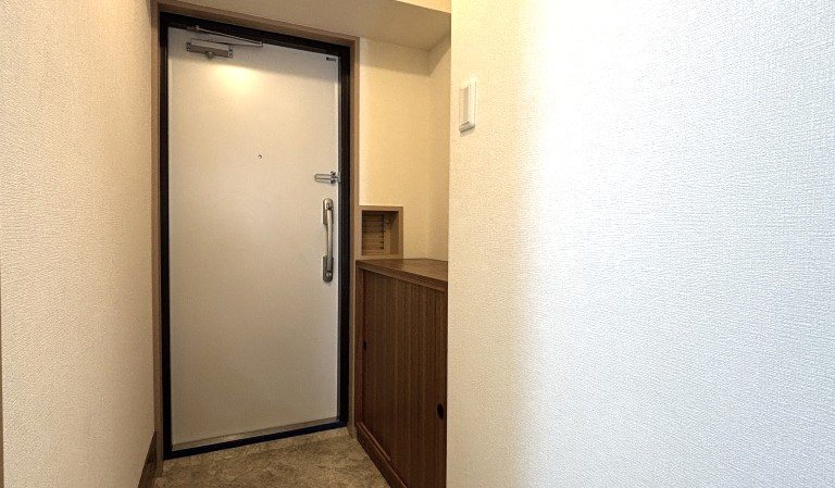 玄関:近隣には飲食店やスーパーが並ぶエリアです。