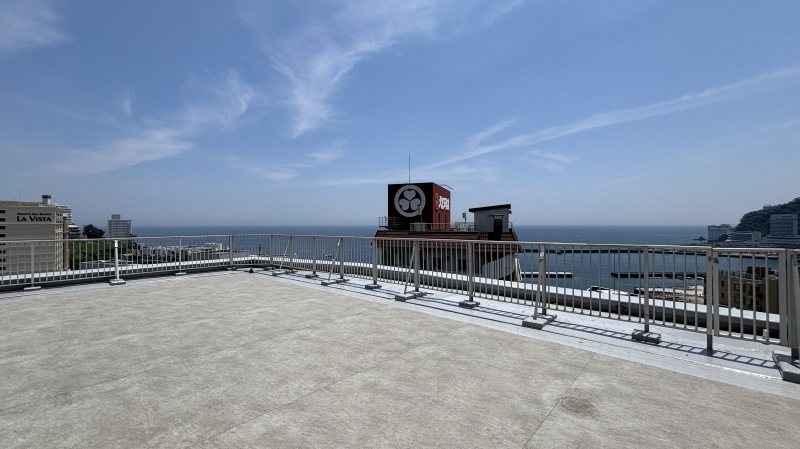 当マンションの魅力は熱海駅徒歩7分の利便性と源泉かけ流しの展望温泉大浴場です。