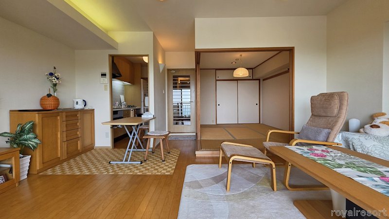キッチン、和室方面をバルコニー側から望むとこの様な感じです。