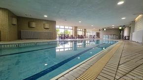 冬の一部の期間は運営していませんが、マンション内にある屋内プール。