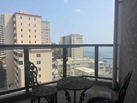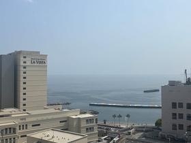 【バルコニー】こちらが海側方向の眺望。再開発進む熱海はリゾートホテルなども多く建築されています。