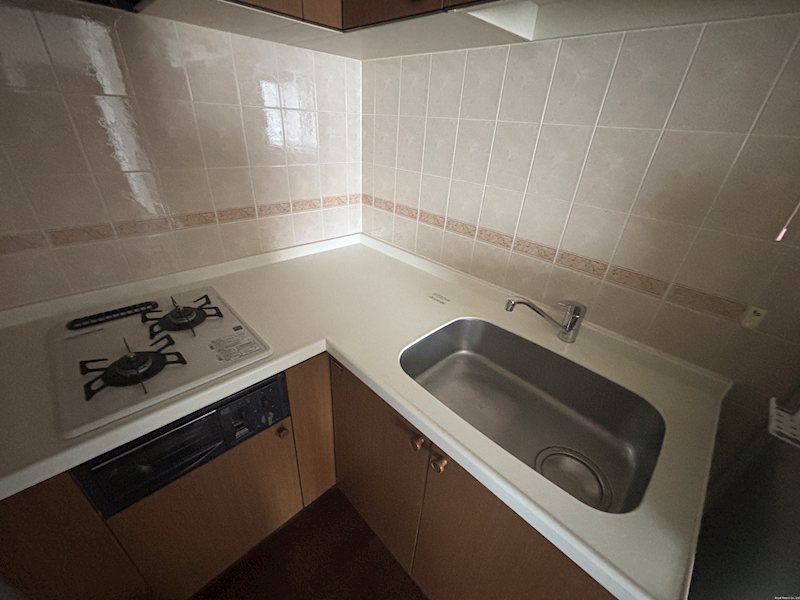 【キッチン】使いやすいL字型。コンロは都市ガス仕様です。
