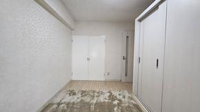 こちらが廊下側の洋室になります。造り付けの収納棚があります。
