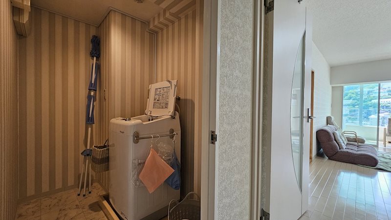 ユーティリティスペース。洗濯機の設置だけでなく、他の物も収納できるスペースです。
