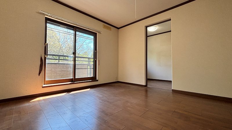 【洋室②】南向きの窓からは日が差し込みます。右手には書斎がございます。