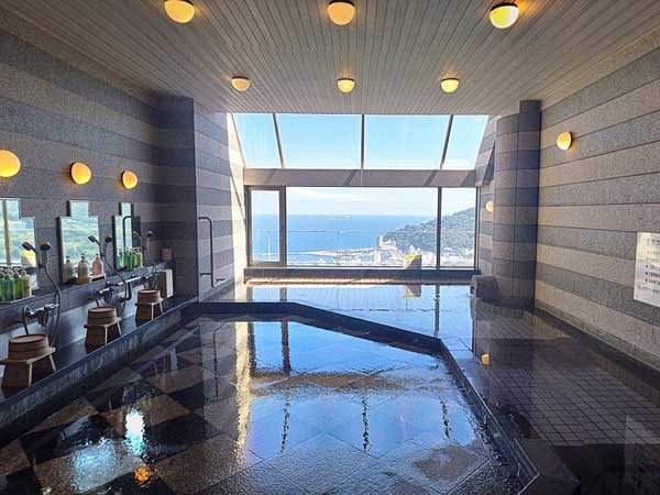 【温泉大浴場】絶景の相模湾を見ながら徳川家康も愛した熱海の湯が堪能出来ます。