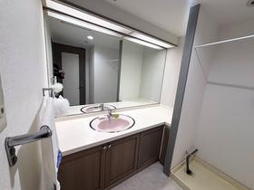 【洗面室】大鏡を設えた洗面化粧台。