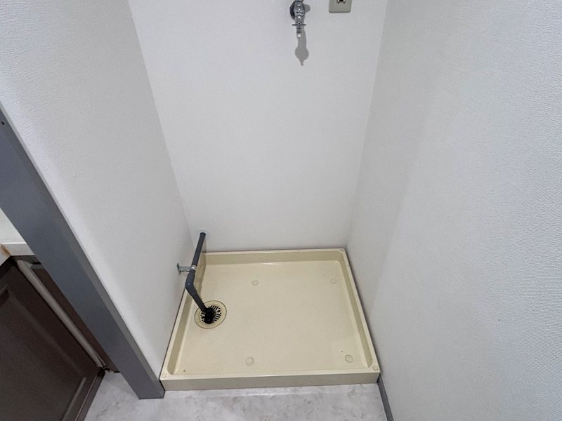 【洗面室】洗面化粧台横に洗濯機置場が設置されております。