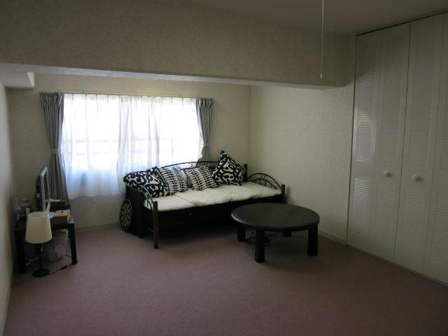 洋室(1)は約8帖程です。南西側、室内は収納力のある洋服ダンスも設置されております。