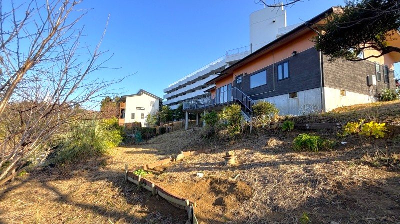 ・BBQも出来るフラットなガーデン ・駐車スペース2台分 ・敷地421.43㎡、延床面積219.82㎡の大型住戸 ・海と山を臨む自然環境を楽しめる立地 ・相の原団地バス停徒歩1分