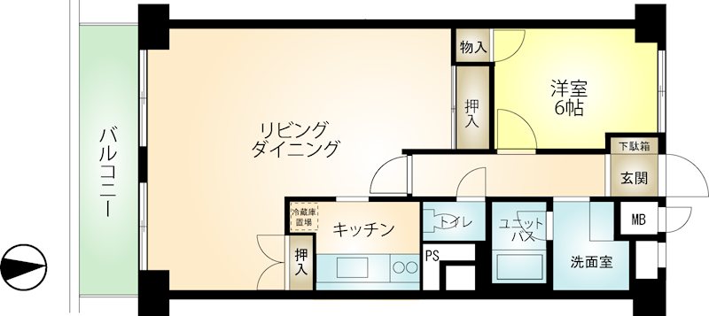 専有:59.22m² / 間取り:2LDK 平成2年(1990年)6月 / 7階だての3階