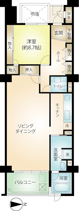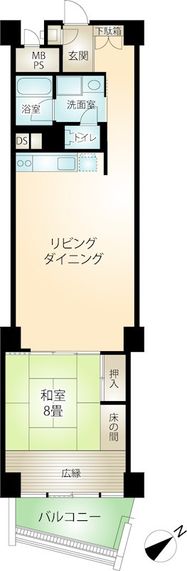 専有:31.58m² / 間取り:1K 昭和53年(1978年)9月 / 8階だての8階