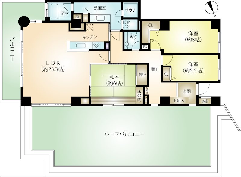 ●13階高層階住戸で、街・海・駅を一望できる開放的な眺望 ●広さ114.89㎡の3LDKで、ゆとりあるリビングダイニング23.3帖 ●95.09㎡のルーフバルコニー付き ●ゆとりある日常の快適性を重視した設計 ●温泉大浴場、フィットネスルーム、ライブラリーなど充実した共用施設 ●別荘利用から定住まで幅広く対応 ●ペットと過ごすマンション