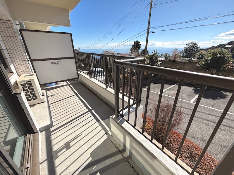 □ 栄えあるグッドデザイン賞受賞レジデンス「ロイヤルヴィラ熱海」I棟4階 □ バルコニーから相模湾を望む □ ゆったり83.56㎡の1SLDK