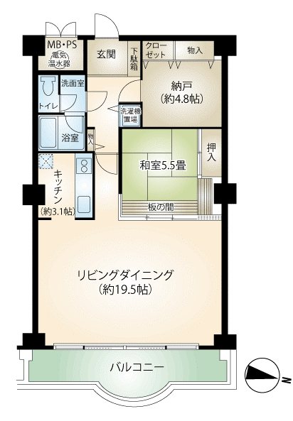 □ LDK + 和室 + 寝室 の全3部屋(1LDK+S)