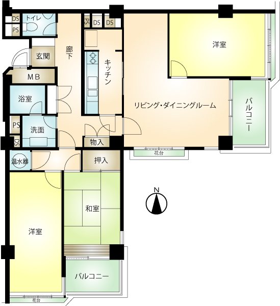 ・100㎡超の角部屋3LDK