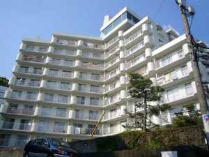 熱海駅から市の中心地へ向かう方向に徒歩13分、熱海サンビーチまで徒歩7分、大型スーパー(マックスバリュ熱海店)まで徒歩4分という立地条件。マンションの目の前にも静岡銀行があります。お部屋のタイプは約25㎥、33㎥の2Kタイプと約78㎡の2LDKタイプの3種類があります。11階にある展望ラウンジからは海上花火大会を望みます。温泉大浴場は清掃時間を除く24時間利用可能です。昭和49年12月築ではありますが、利便性重視という方にお薦めしたいマンションです。