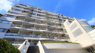 JR来宮駅まで徒歩で約10分・名所「熱海梅園」近くの高台から海を望むマンション。館内に温泉大浴場がありますが、一部の住戸(57戸)には戸別温泉が引き込まれており、さらにそのうちの一部(40戸)にはサウナまで付いています。全室東側にバルコニーがあり、1階レベルでも水平線を望むことができますがやはり上層階の開放的な眺望は大きな魅力です。