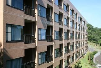 網代山の高台、緑に囲まれたエリアに建つマンション。豊かな緑越しに多賀・網代の海、さらに上の階では富士山の山頂を望むことができます。ペット(犬・猫)の同伴が可能(定住での飼育不可)です。