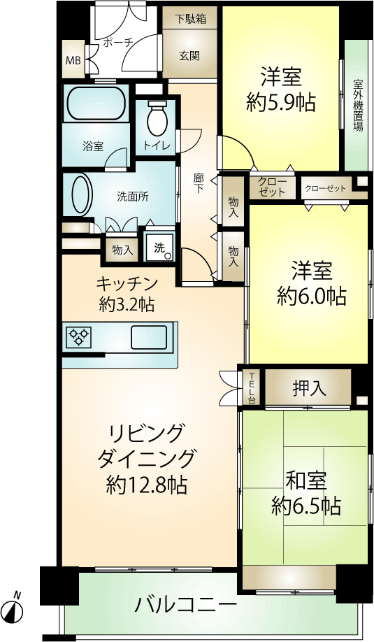 | 共用施設 | 宅配ロッカー/ペット用足洗い場/駐輪場:バイク置場 敷地内14台 500円/月・自転車置場 40台 200円/月 |