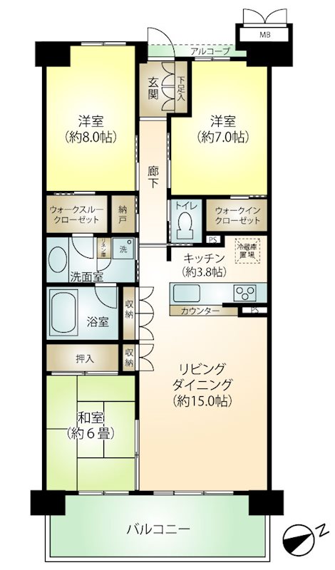 専有:90.93m² / 間取り:3LDK 平成24年(2012年)2月 / 7階だての6階