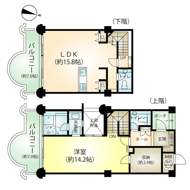熱海市街地・相模湾を望む温泉大浴場付リゾートマンション 広々としたルーフバルコニー付き、大型3LDK角部屋
