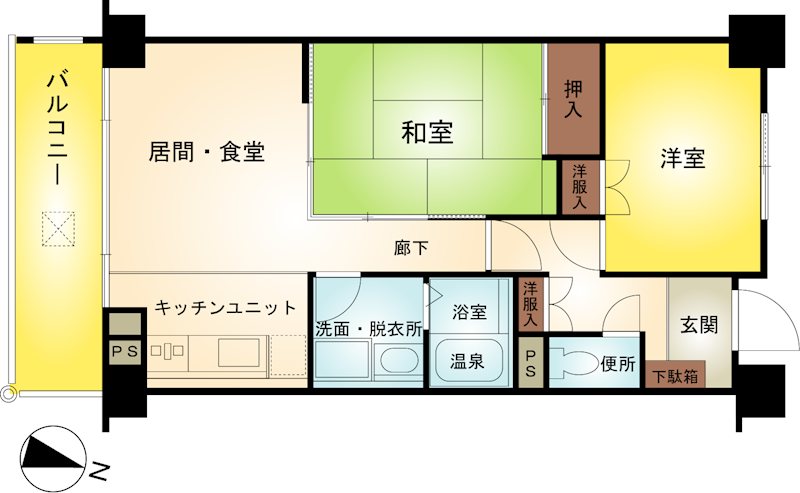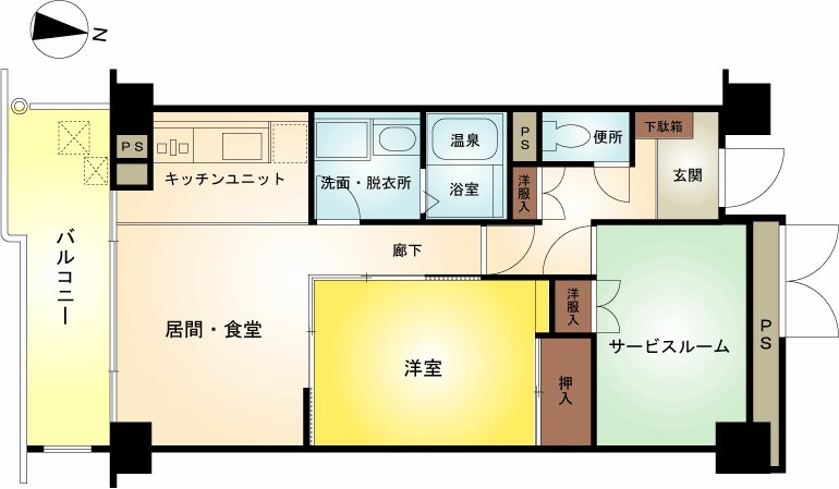 癒しの露天風呂付温泉大浴場 4階 約61.76㎡の1LDK