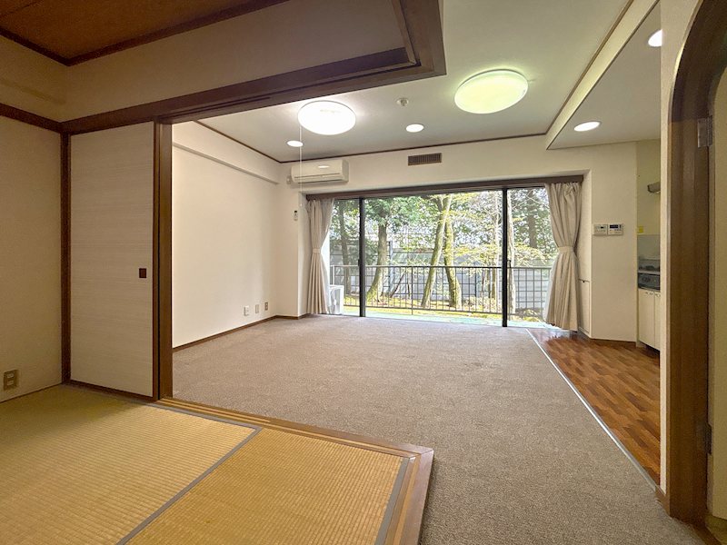 個別温泉に癒される低層リゾートマンション「箱根山ヴィラ」J棟2階 ◇日当たり良好のJ棟 ◇リビング・廊下等一部床フローリングに変更 ◇駐車場無料