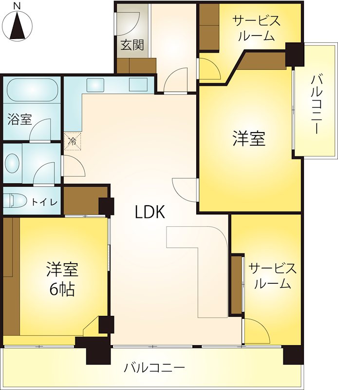 専有:86.92m² / 間取り:2LDK 平成2年(1990年)6月 / 6階だての4階